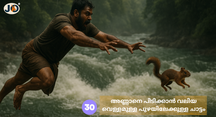 അണ്ണാനെ പിടിക്കാൻ വലിയ വെള്ളമുള്ള പുഴയിലേക്കുള്ള ചാട്ടം